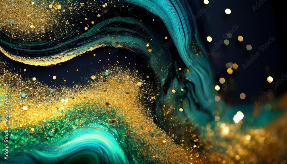Ink Drip Glitter Liquid Spill Blur Black Green Wallpaper Mural - Decorly Solutions | Decorly Solutions