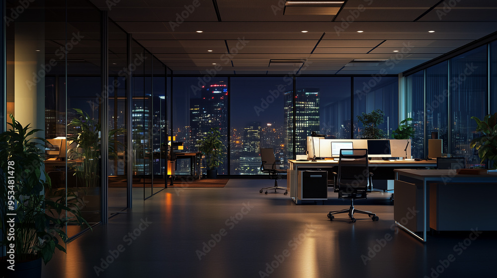 Interior Of Office At Night Wallpaper Mural - Decorly Solutions | Decorly Solutions