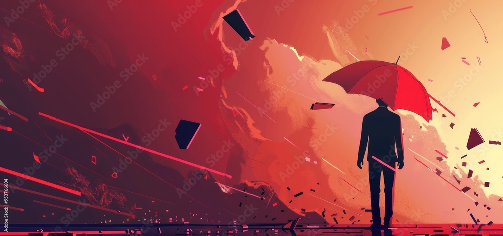 Man With An Umbrella In A Storm Wallpaper Mural - Decorly Solutions | Decorly Solutions