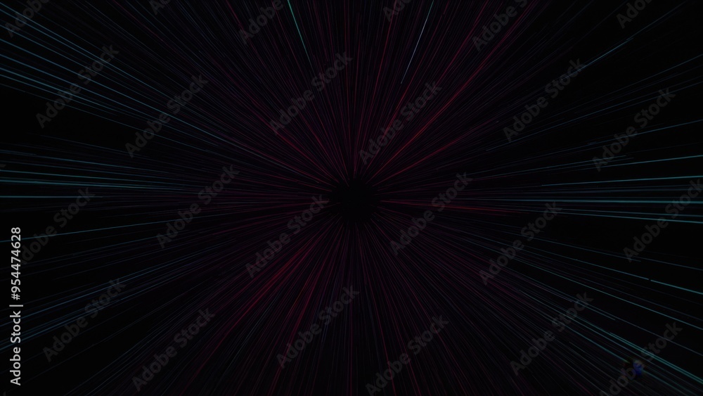 Expressive blue and purple stripes spread out from a central spot on black