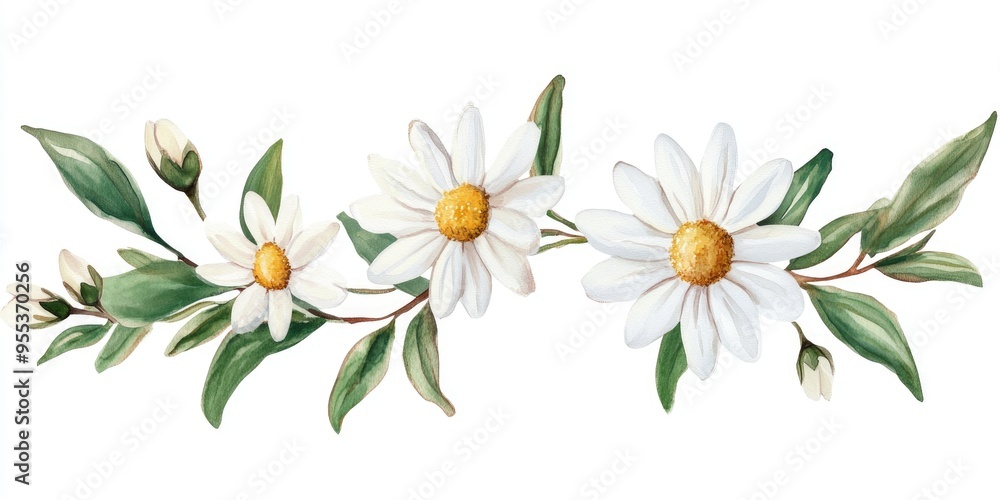 Watercolor Illustration Of A Sprig Featuring White Daisies Wallpaper Mural - Decorly Solutions | Decorly Solutions