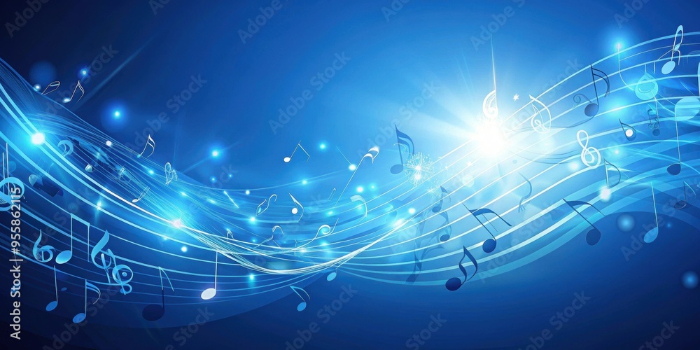 Abstract blue music background with flying notes music abstr Wallpaper