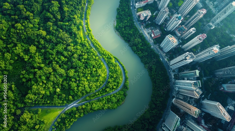 An Aerial View Of A Winding River Cutting Wallpaper Mural - Decorly Solutions | Decorly Solutions