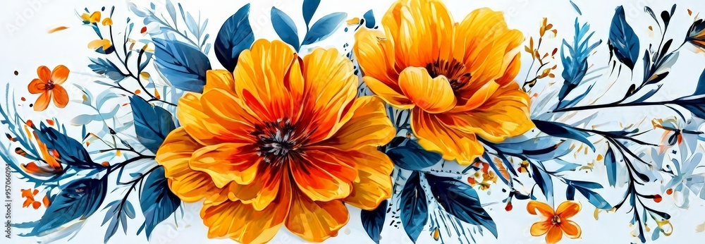 Painting Orange Flowers On White Background Wallpaper Mural - Decorly Solutions | Decorly Solutions