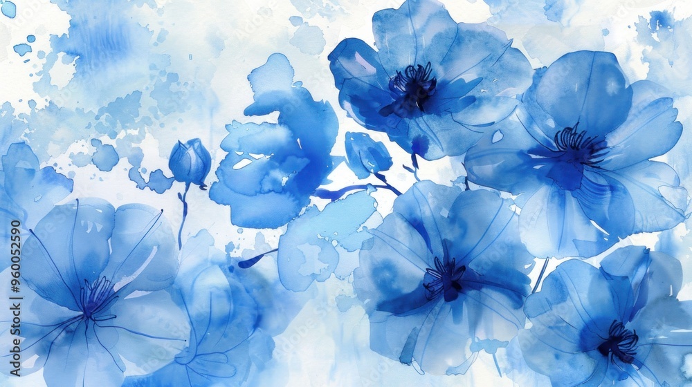 Beautiful Blue Flowers In Watercolor Painting With Abstract Wallpaper Mural - Decorly Solutions | Decorly Solutions