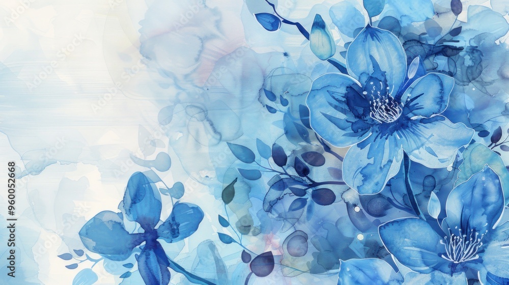 Beautiful Blue Flowers In Watercolor Painting With Abstract Wallpaper Mural - Decorly Solutions | Decorly Solutions