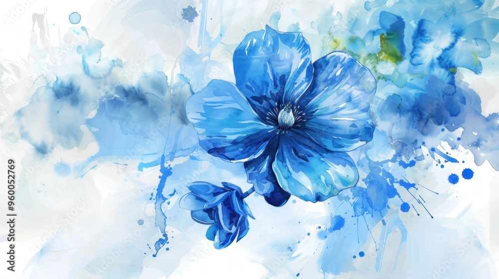 Beautiful Blue Flowers in Watercolor Painting with Abstract Background