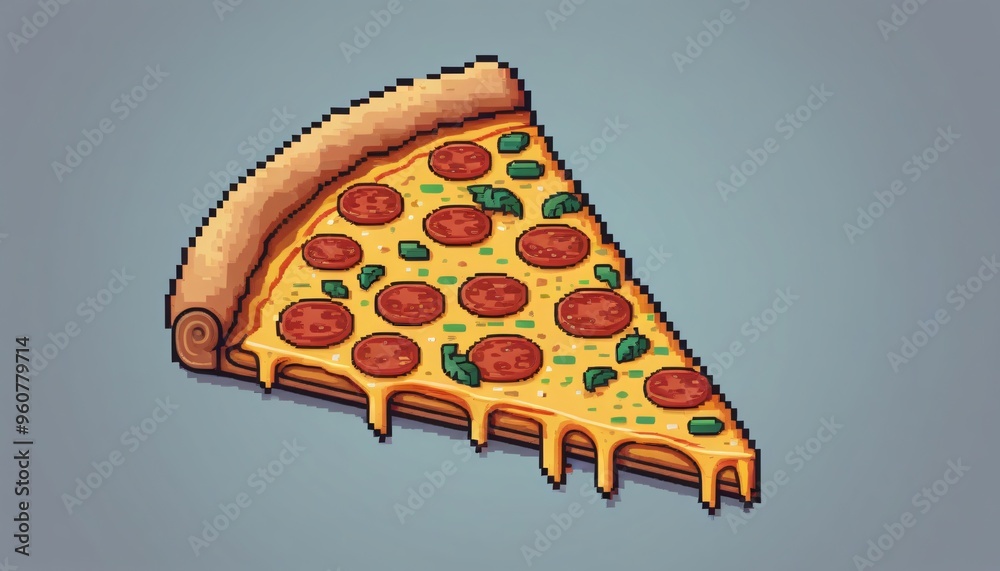 Pixelated pizza slice icon pixel art on white isolated background, vector design.