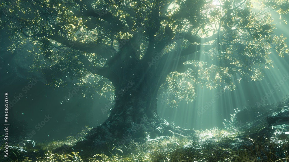 A Majestic Ancient Tree Stands Tall In A Wallpaper Mural - Decorly Solutions | Decorly Solutions