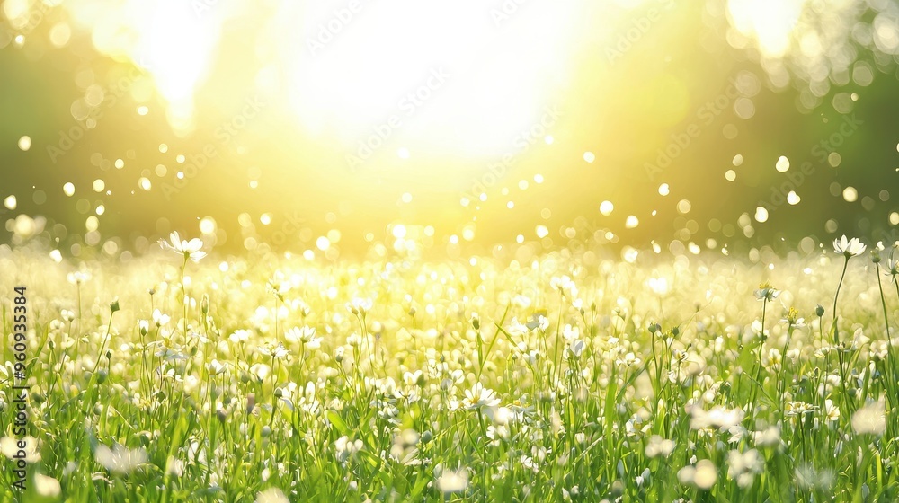 Sunny Meadow With White Flowers And Bokeh Background Wallpaper Mural - Decorly Solutions | Decorly Solutions
