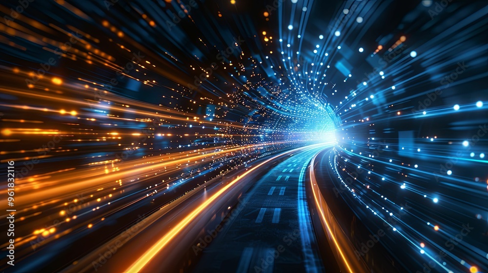 A Glowing Blue And Orange Tunnel Of Light Wallpaper Mural - Decorly Solutions | Decorly Solutions