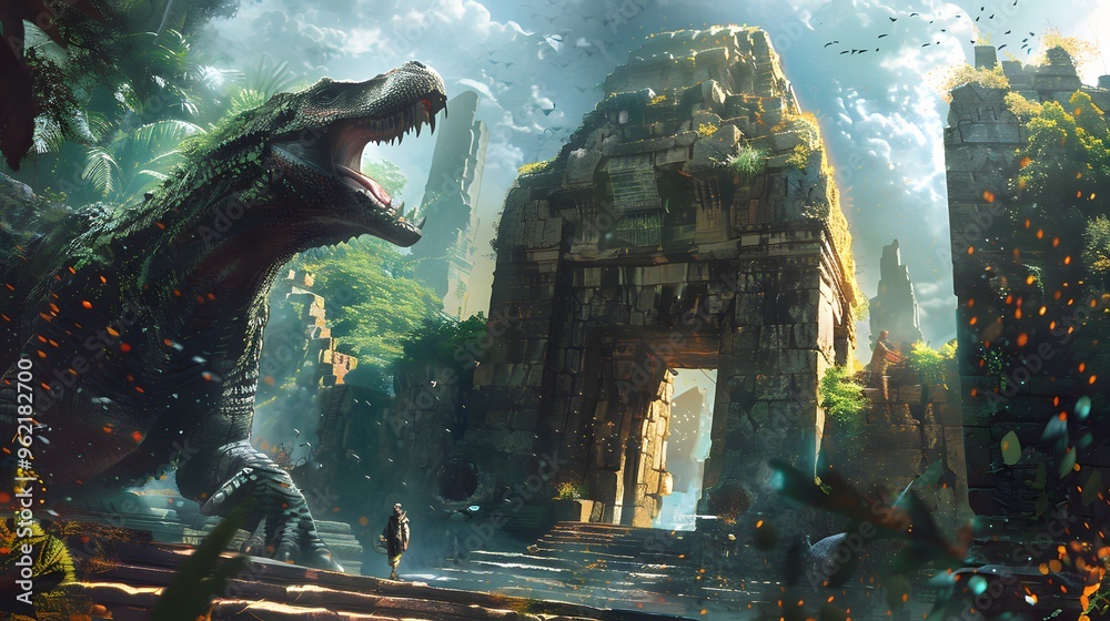 Fantastical Ruins With Enchanted Creatures Exploring Ancient Ruins Wallpaper Mural - Decorly Solutions | Decorly Solutions