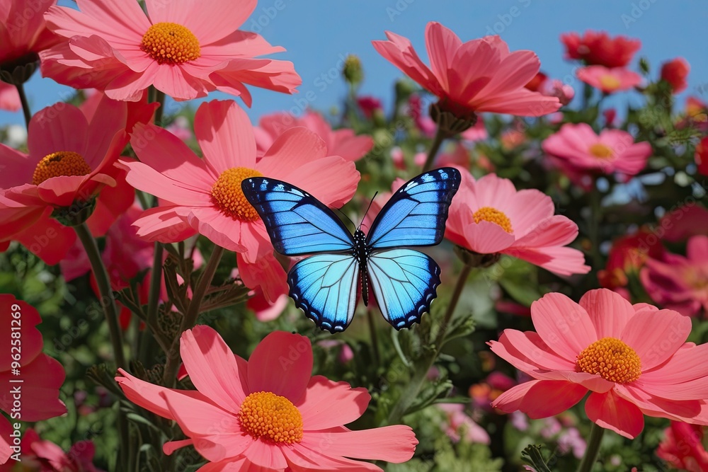 Vibrant Coral Pink And Azure Garden Blooms With Wallpaper Mural - Decorly Solutions | Decorly Solutions
