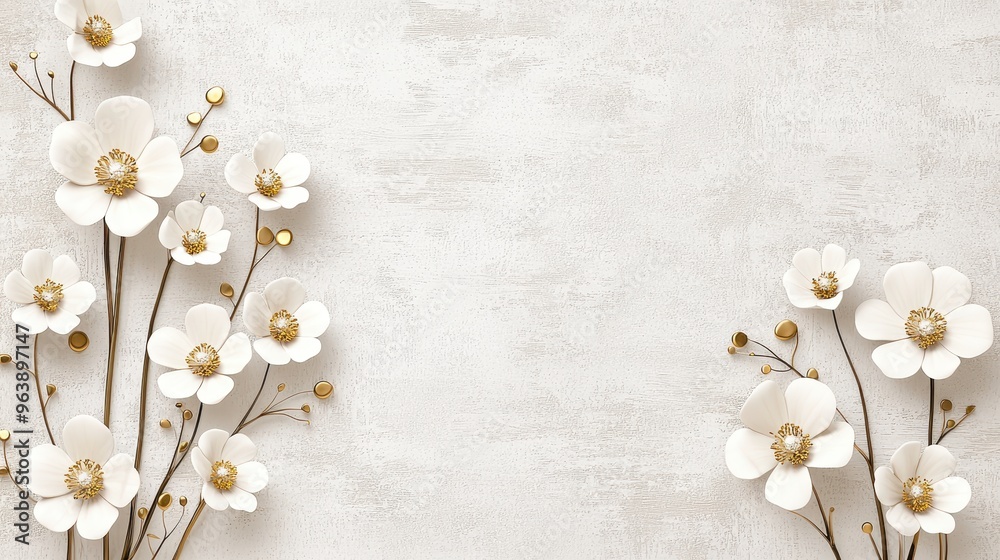 White Flowers With Golden Accents On A White Wallpaper Mural - Decorly Solutions | Decorly Solutions