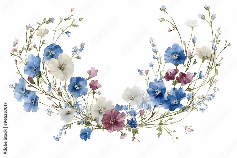 Watercolor Floral Wreath With Blue Pink And White Wallpaper Mural - Decorly Solutions | Decorly Solutions