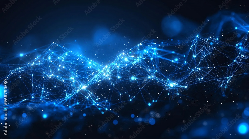 Abstract Digital Technology Background With Glowing Connections And Particles On A Blue