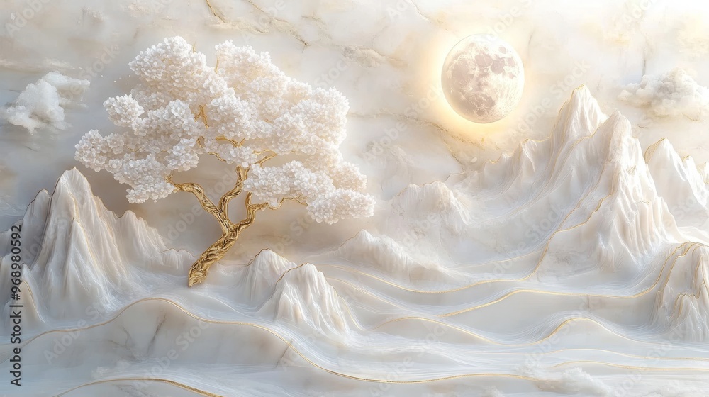Stunning 3D featuring golden leaves on top of a marble backg Wallpaper