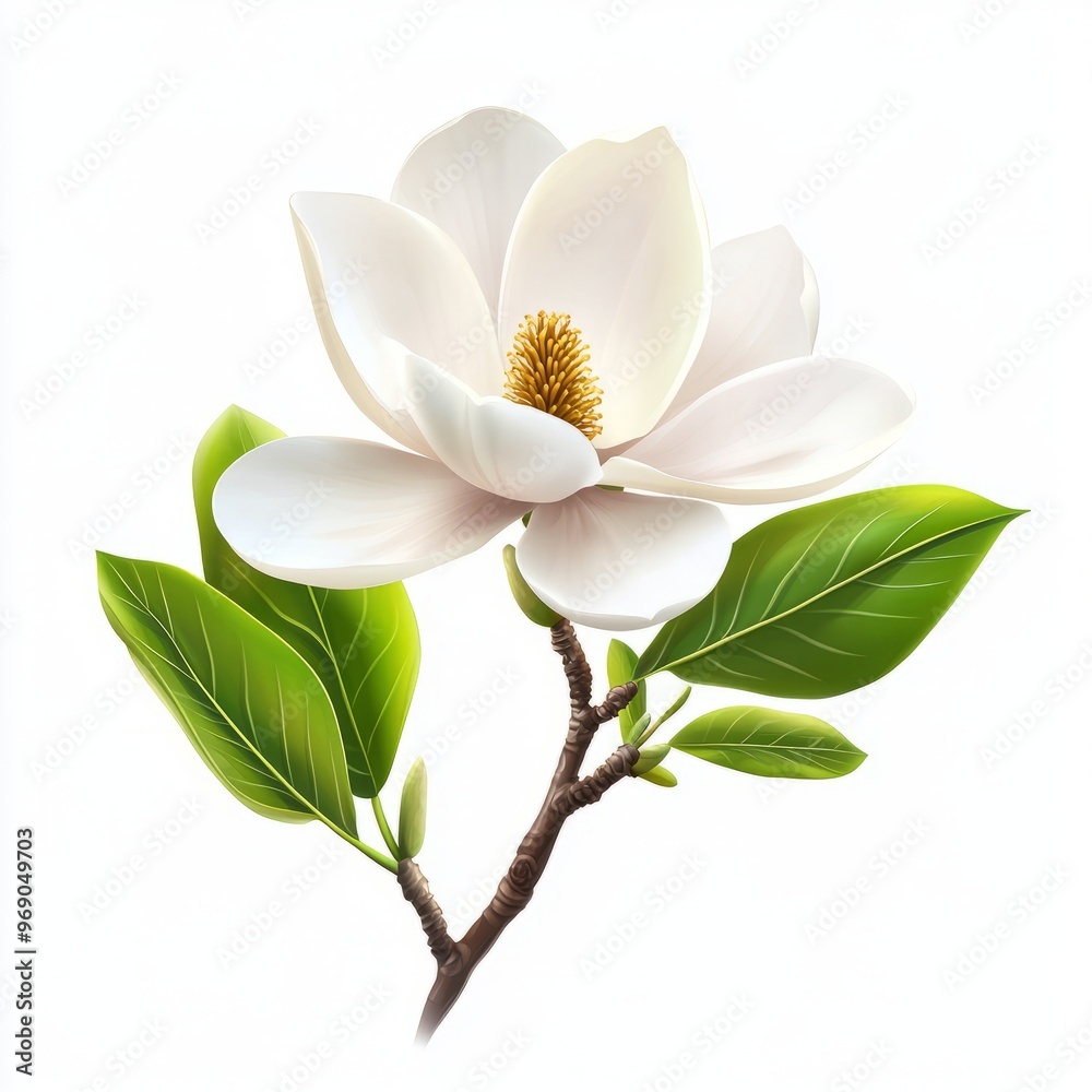 Magnolia With Leaves Isolated On White Background Wallpaper Mural - Decorly Solutions | Decorly Solutions