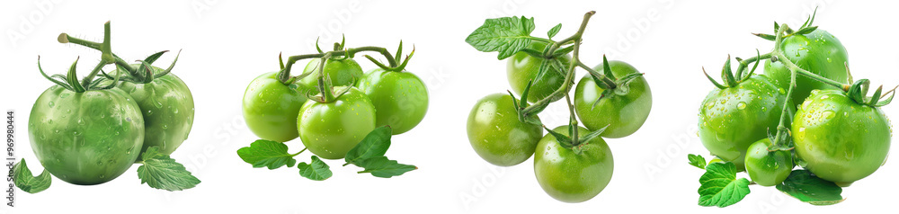 Fresh Green Tomatoes With Leaves Isolated On Transparent Wallpaper Mural - Decorly Solutions | Decorly Solutions