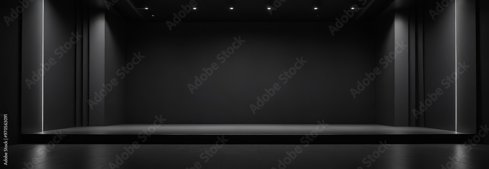 A Dimly Lit Empty Stage With A Black Wallpaper Mural - Decorly Solutions | Decorly Solutions