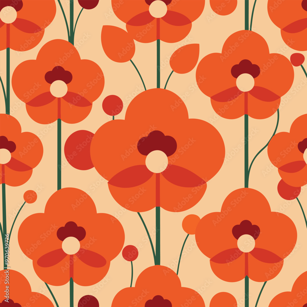 Design Of A Pattern Of Abstract Poppy Flowers Wallpaper Mural - Decorly Solutions | Decorly Solutions