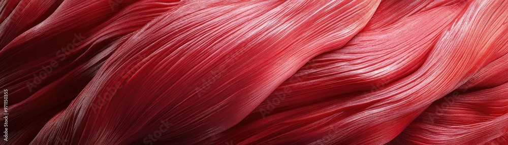 A close-up of vibrant red fabric showcasing fluid, wavy patterns, perfect for backgrounds or artistic designs.