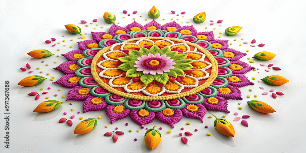 3d Isolated Rangoli Pattern With Flower Petals - Wallpaper Mural - Decorly Solutions | Decorly Solutions