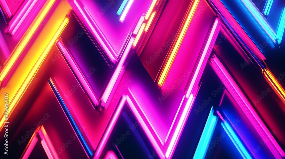 Abstract Neon Lights In A Zig Zag Pattern Wallpaper Mural - Decorly Solutions | Decorly Solutions