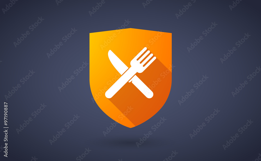 Long shadow shield icon with  cutlery