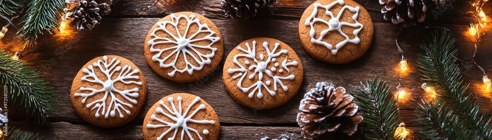 Delicious Decorated Cookies Surrounded By Festive Pinecones And Wallpaper Mural - Decorly Solutions | Decorly Solutions