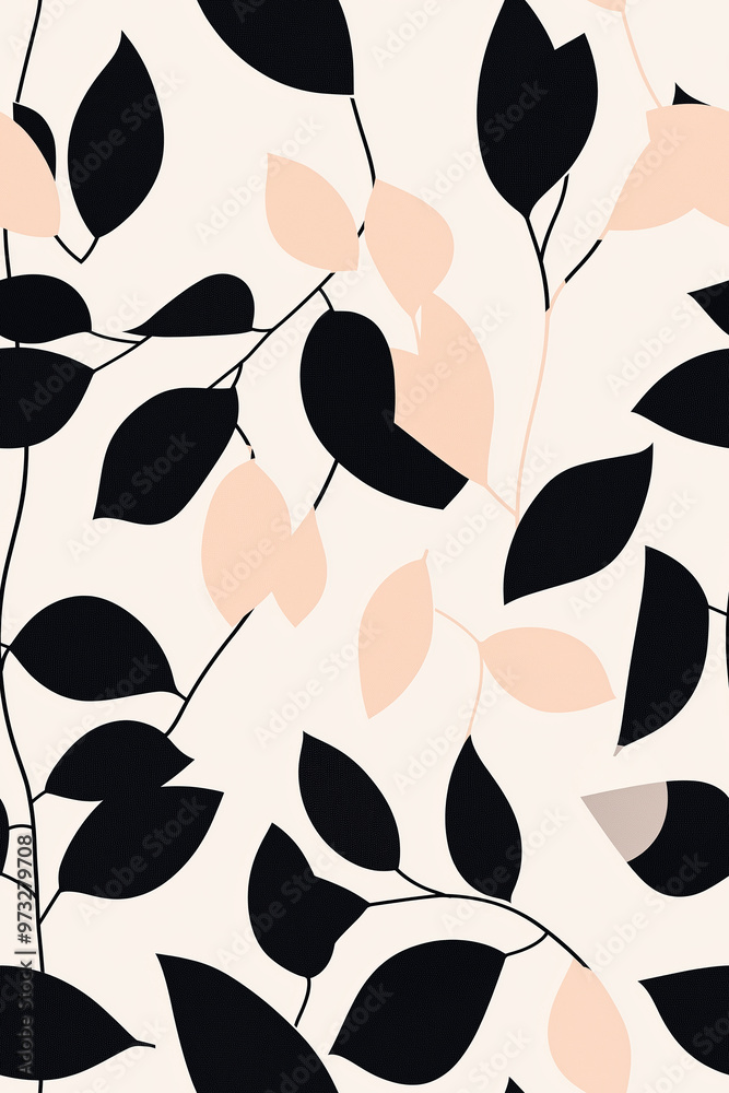 Minimalist seamless pattern of black and soft pink leaves on Wallpaper