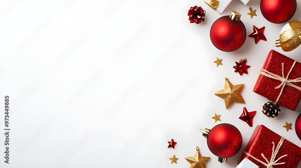 Red & Gold Christmas Decorations On White Background Wallpaper Mural - Decorly Solutions | Decorly Solutions