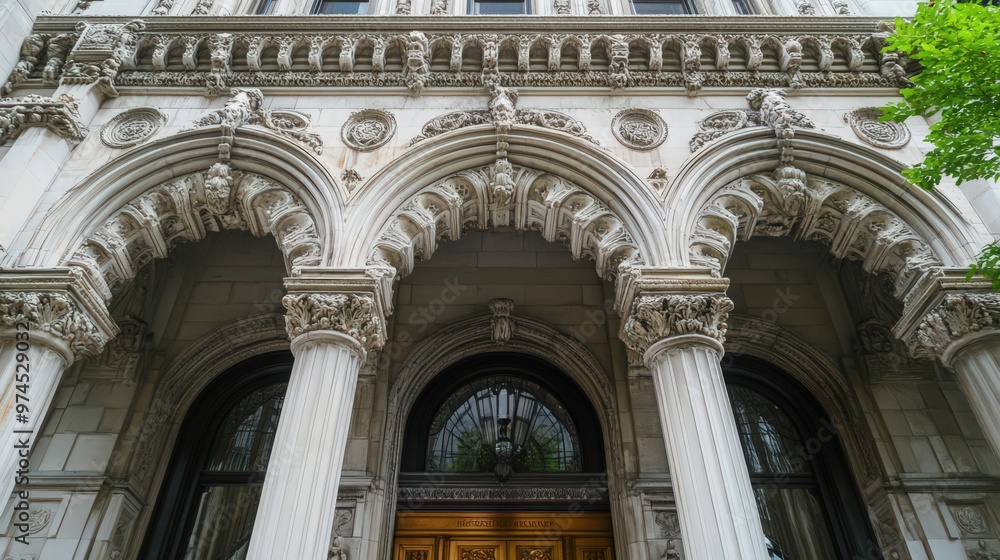 The facade of a historic government structure with gothic ar Wallpaper