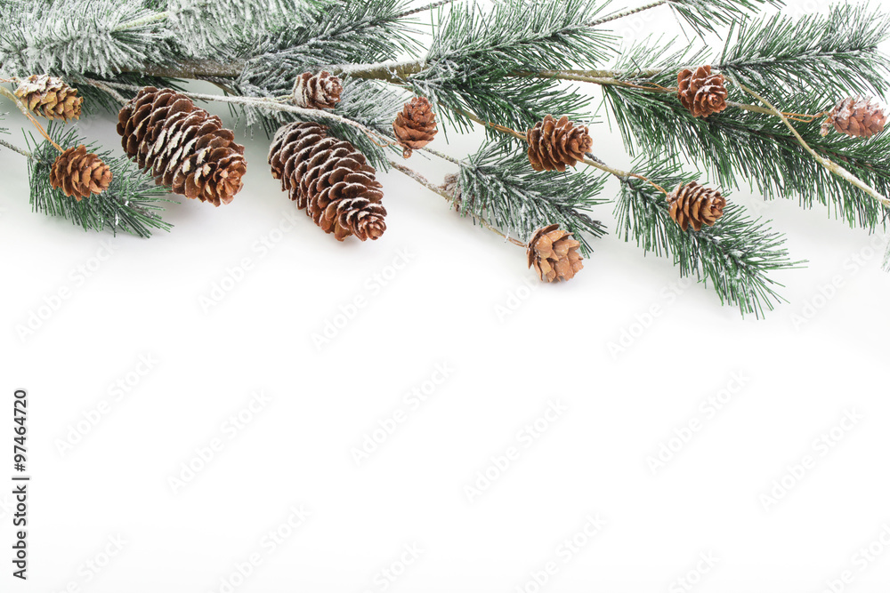 Evergreen Branches and Pinecones Adorned with Delicate Snowberries