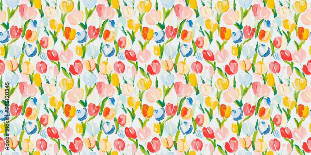 An abstract painting pattern of tulips soft pastel colors in Wallpaper