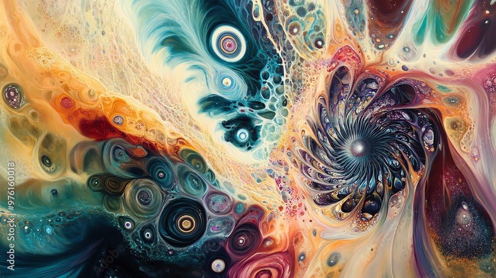 Vibrant Cosmic Abstract Art with Swirling Colors