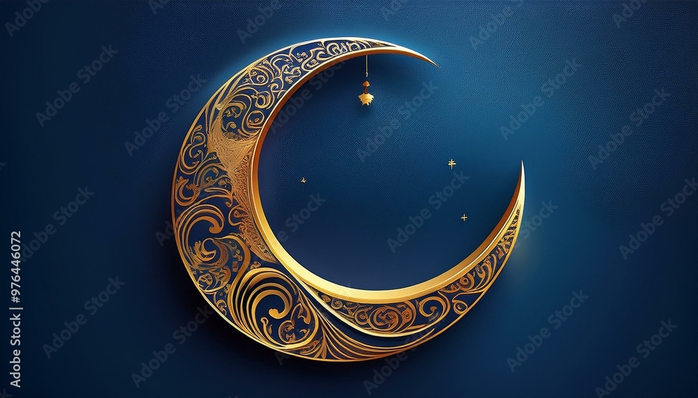 Ornate Golden Crescent Moon On A Deep Blue Wallpaper Mural - Decorly Solutions | Decorly Solutions