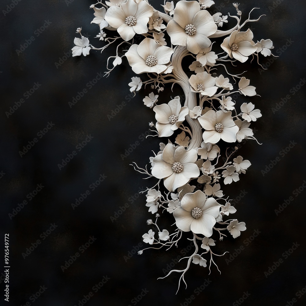 A Large White Flower Arrangement With A Black Wallpaper Mural - Decorly Solutions | Decorly Solutions