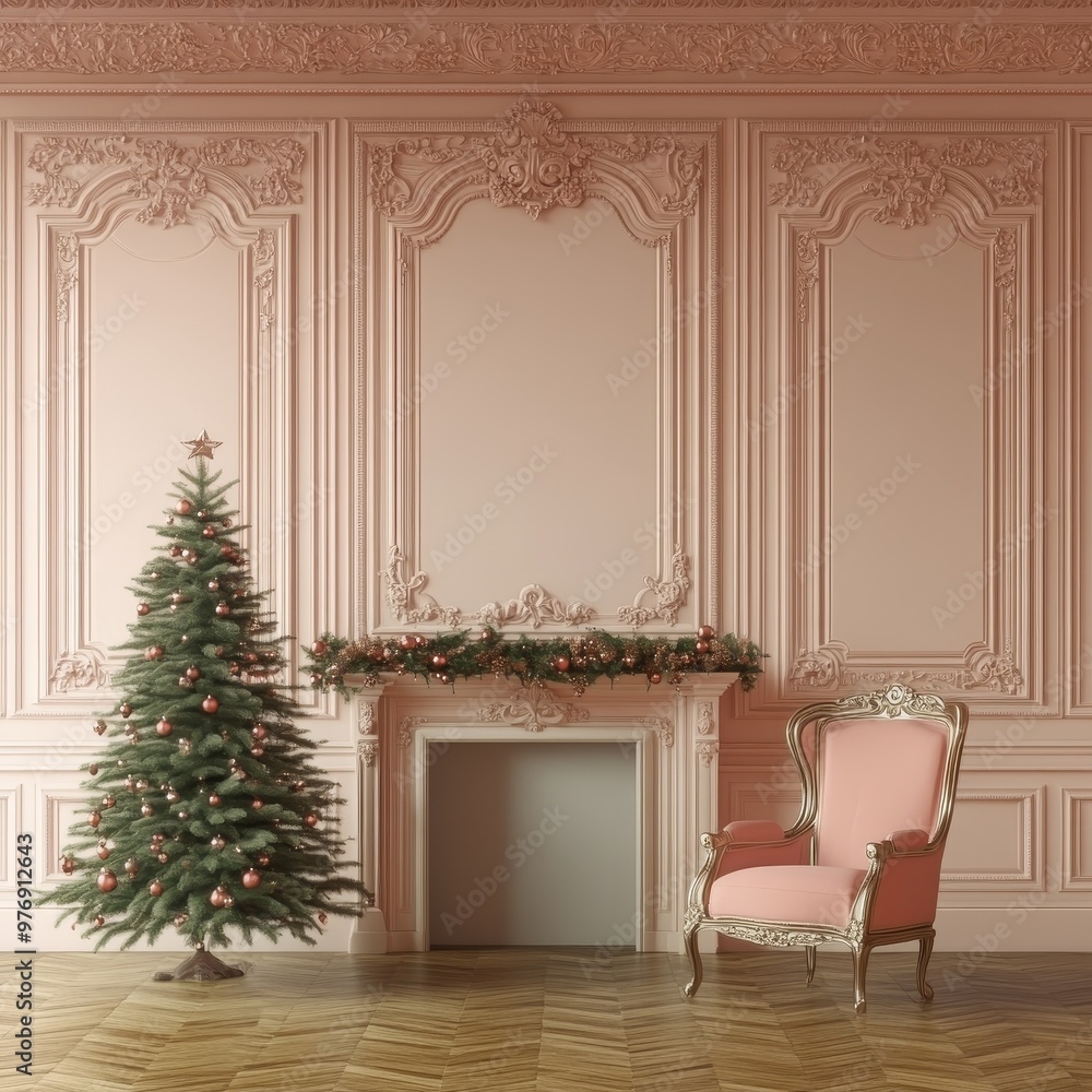 Cozy Christmas Interior Featuring a Beautiful Teal Wall, Festive Tree, Garland, and Gift Boxes