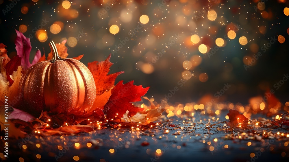 Autumn Pumpkin With Warm Lights & Leaves Wallpaper Mural - Decorly Solutions | Decorly Solutions