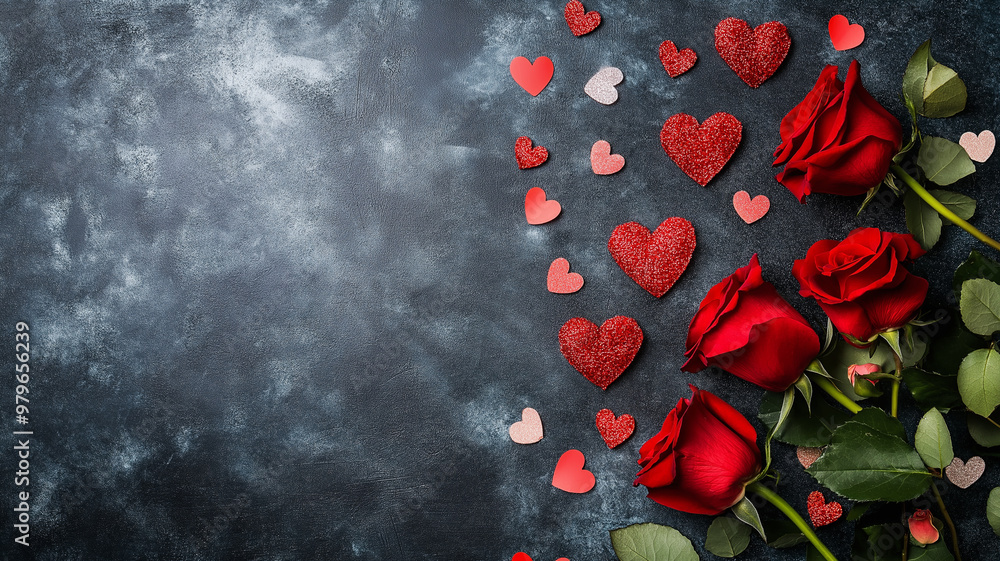 Romantic Red Roses With Heart Decorations Wallpaper Mural - Decorly Solutions | Decorly Solutions