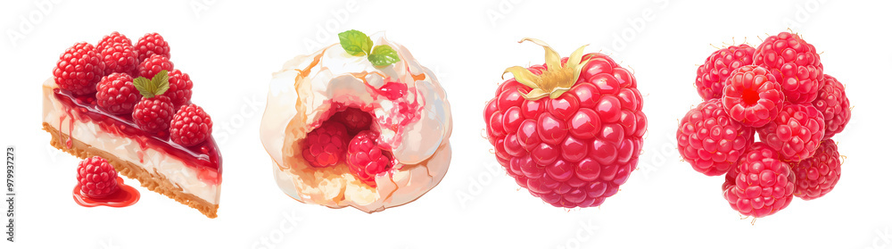 Raspberry Cheesecake Pavlova And Fresh Raspberries Illustration Isolated Wallpaper Mural - Decorly Solutions | Decorly Solutions