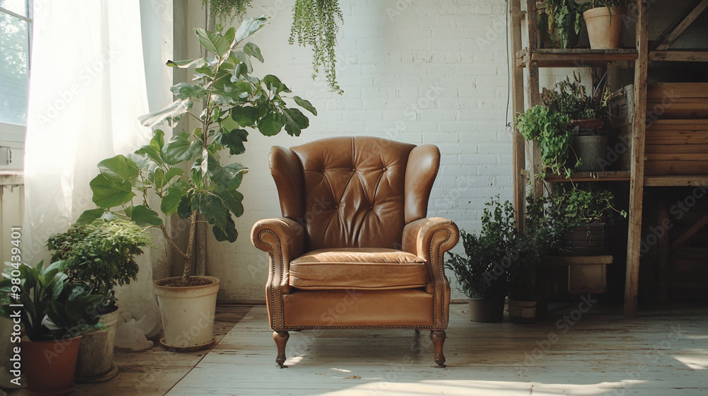Comfortable elegant sofa armchair on wooden floor in Modern home interior