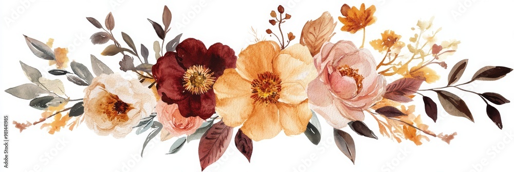 This Stunning Watercolor Wedding Bouquet Features Vibrant Autumn Wallpaper Mural - Decorly Solutions | Decorly Solutions