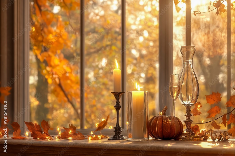 Autumn Decor Arrangement With Candles And Pumpkin By Wallpaper Mural - Decorly Solutions | Decorly Solutions