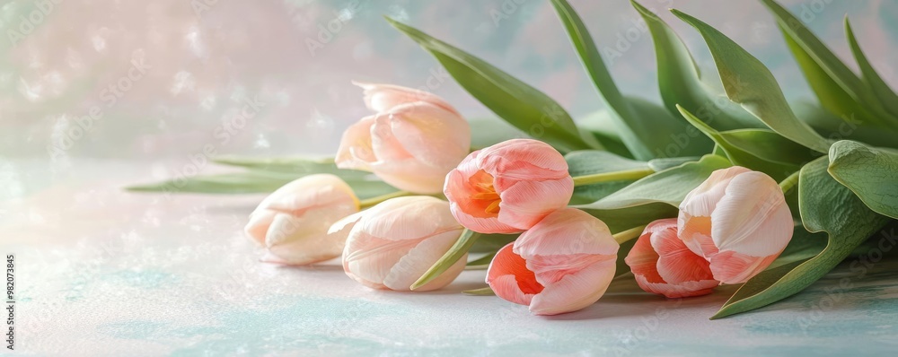 Pastel tulips arranged in a loose bouquet, blooming flowers, floral design