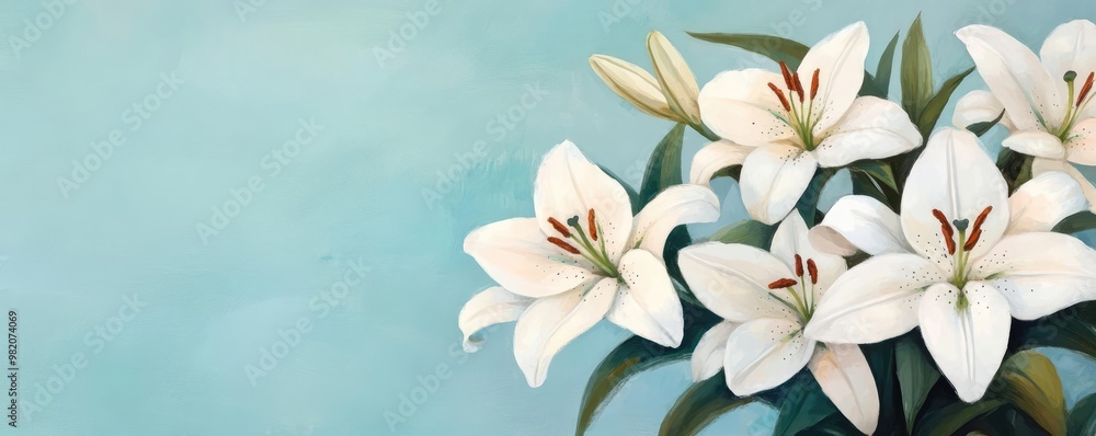 Lilies In Bloom, Vibrant Art Style, Delicate Petals, Watercolor Composition