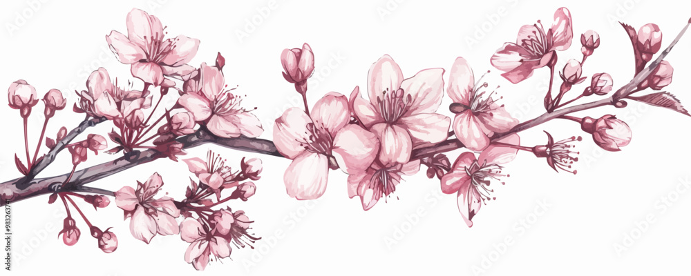 Cherry Blossom Sketch Hand Drawn In Doodle Style Wallpaper Mural - Decorly Solutions | Decorly Solutions