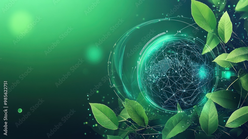A Green Background With A Blue Sphere In Wallpaper Mural - Decorly Solutions | Decorly Solutions