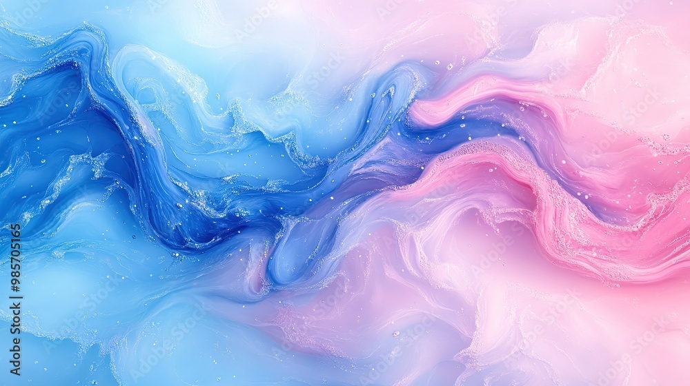 Abstract Swirling Blue and Pink Liquid with Glitter